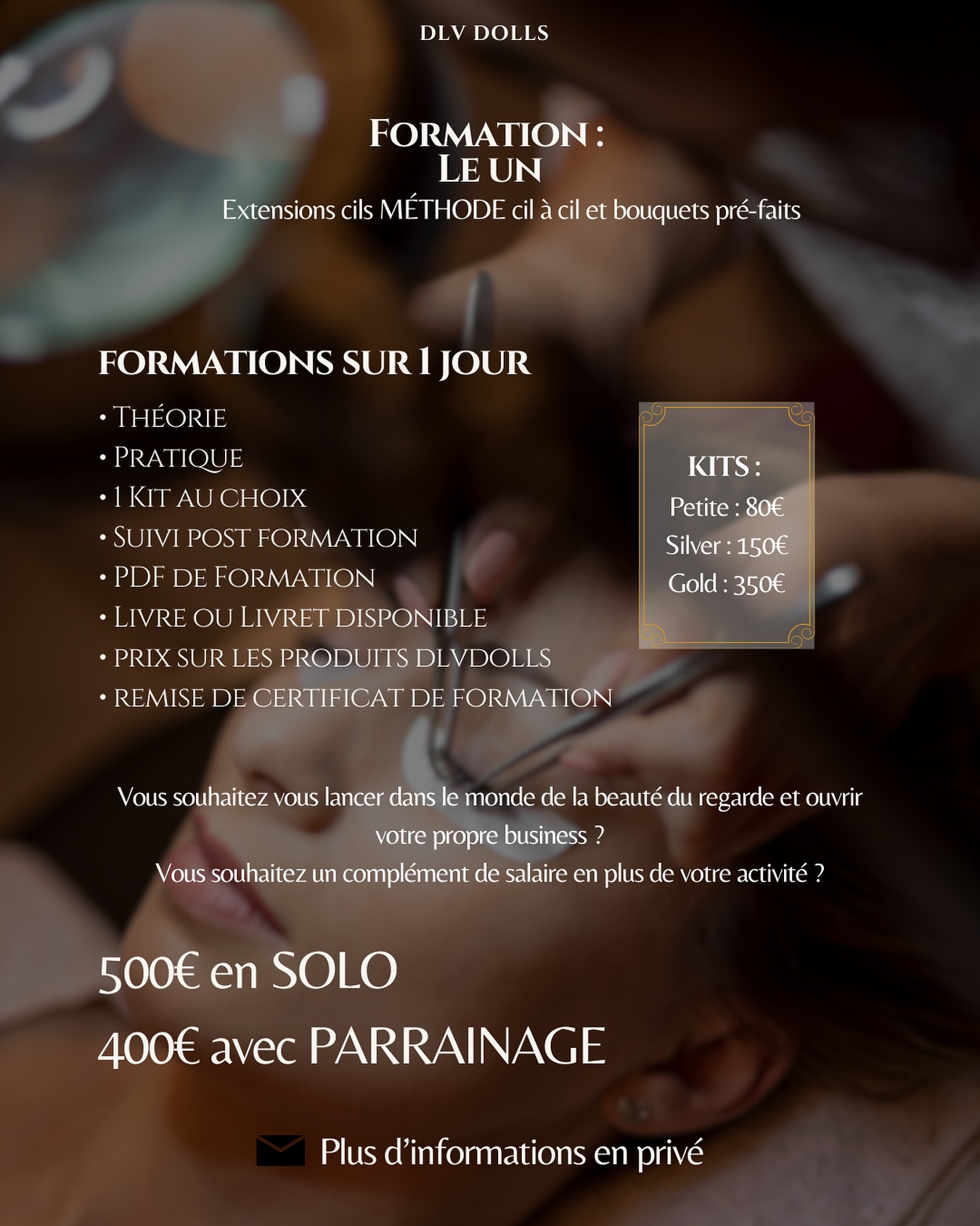 Chez DLV DOLLS, la formation est bien plus qu’un apprentissage : c’est un accompagnement vers la réussite professionnelle. Forte de plus de 10 ans d’expérience, je propose des formations sérieuses, complètes et accessibles, conçues pour vous permettre de maîtriser les techniques des extensions de cils et de vous lancer en toute confiance dans le monde de la beauté du regard.
